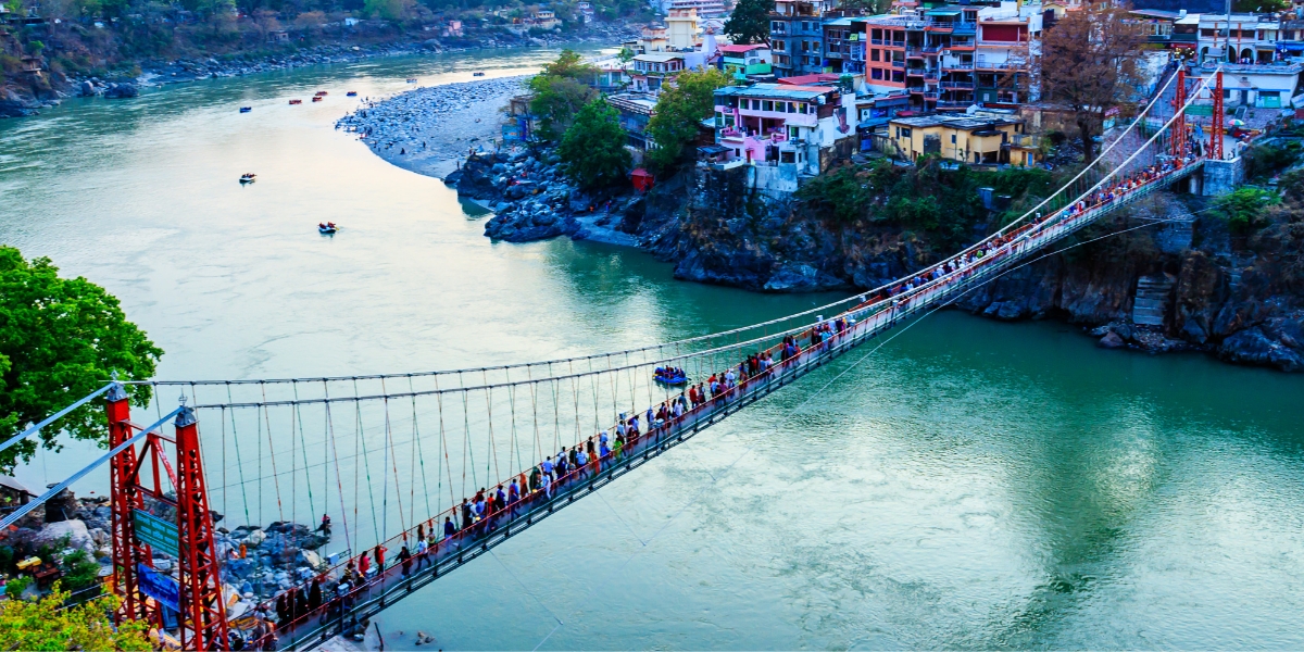 Laxman Jhula in Rishikesh is a revered suspension bridge spanning the Ganges. This iconic landmark offers stunning views, spiritual ambiance, and a serene atmosphere, making it a must-visit destination for those seeking peace and natural beauty.